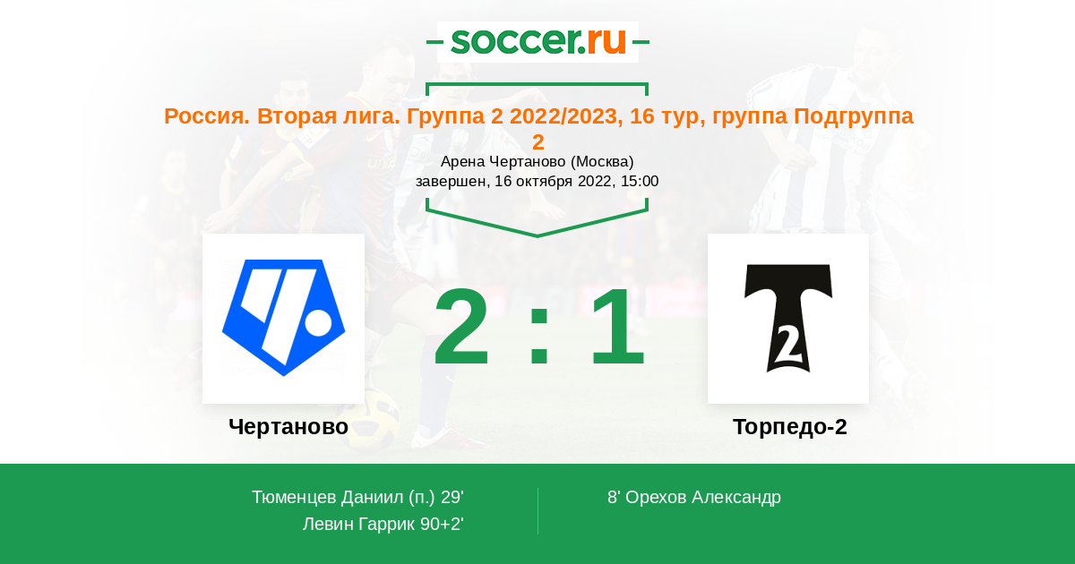 Протокол матча Чертаново против Торпедо-2