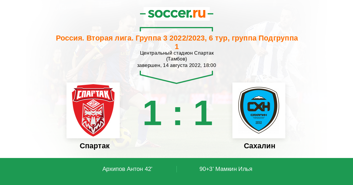 Протокол матча Спартак против Сахалин