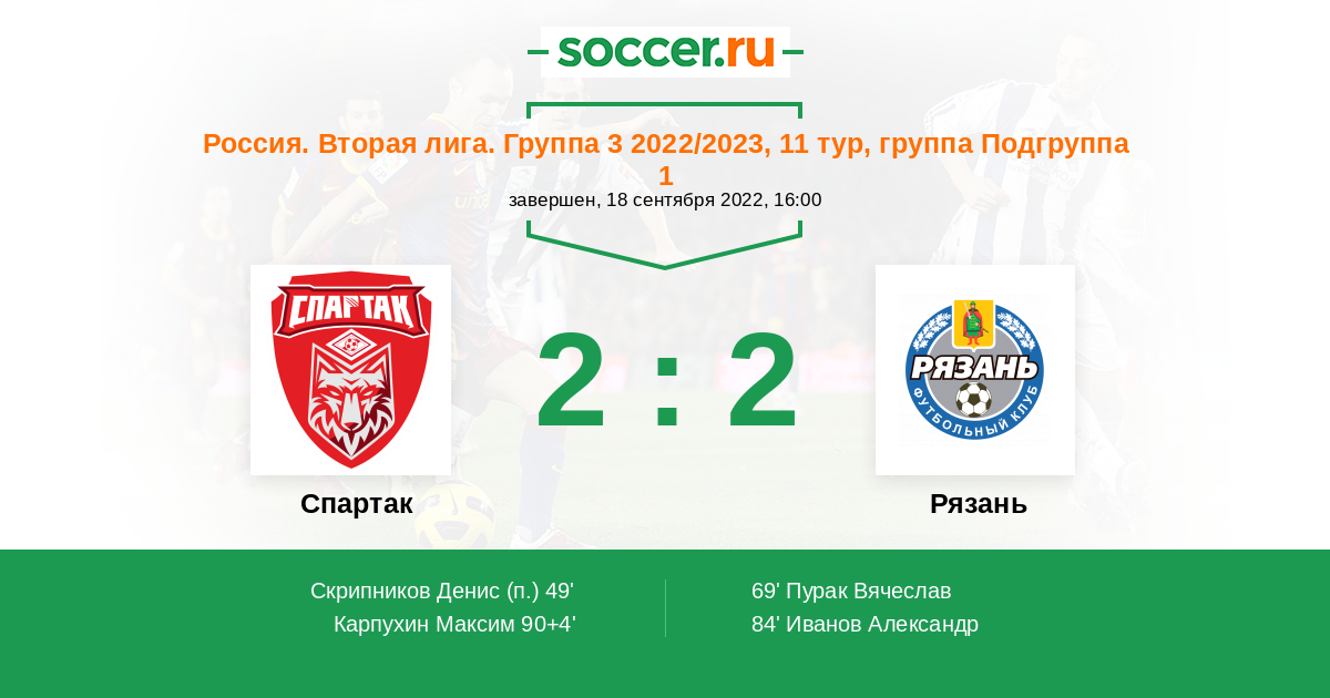 Протокол матча Спартак против Рязань