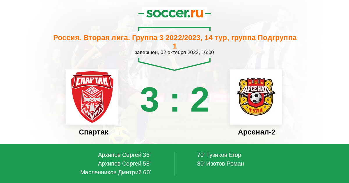 Протокол матча Спартак против Арсенал-2
