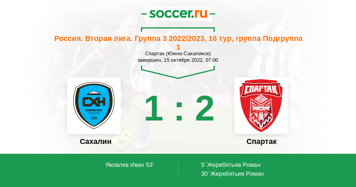Протокол матча Сахалин против Спартак