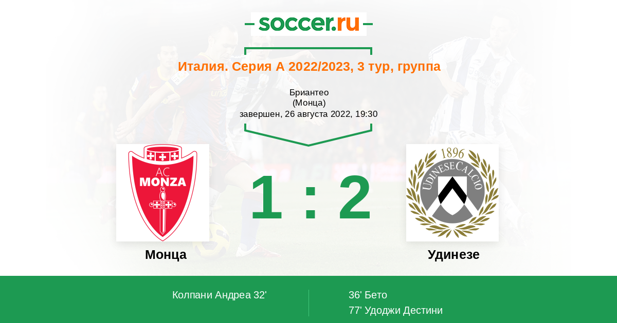 Протокол матча Монца против Удинезе