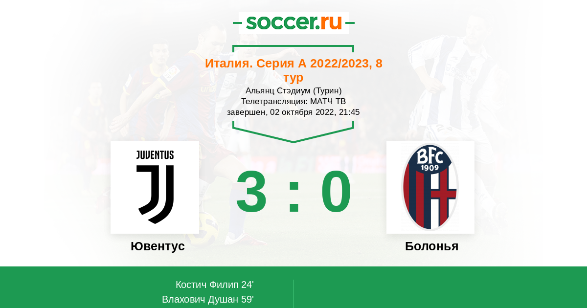 Протокол матча Ювентус против Болонья