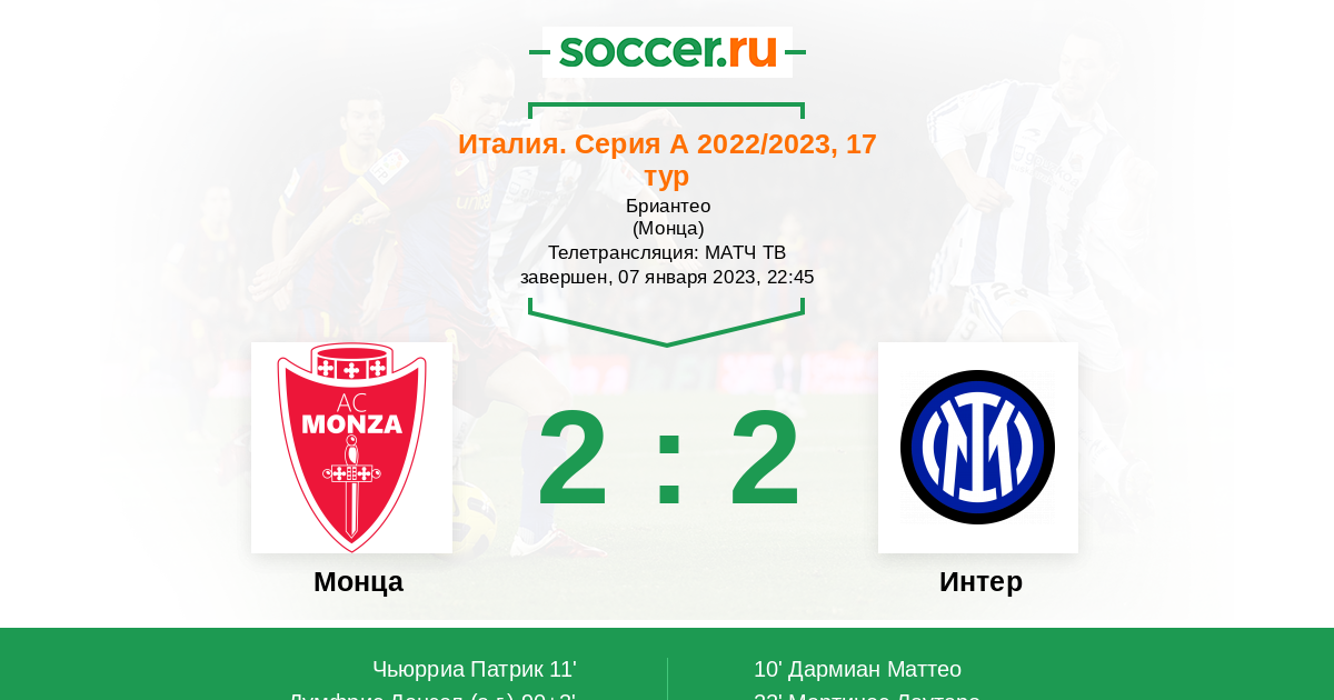 Протокол матча Монца против Интер