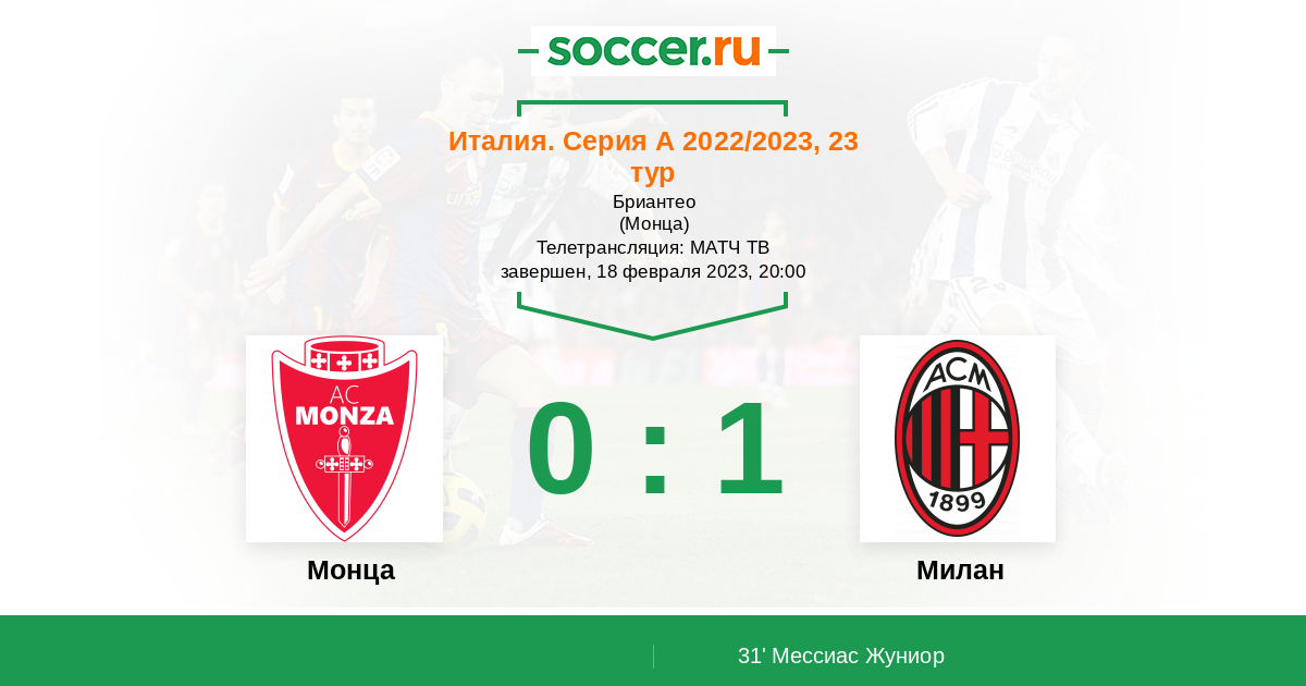 Протокол матча Монца против Милан