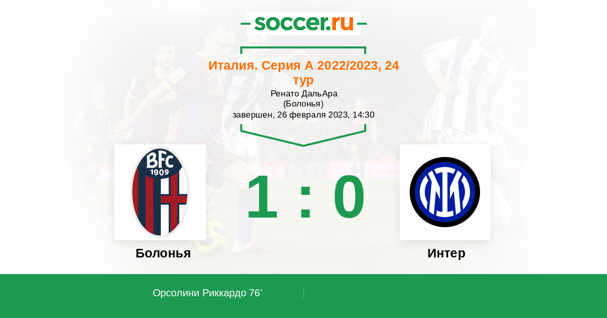 Протокол матча Болонья против Интер
