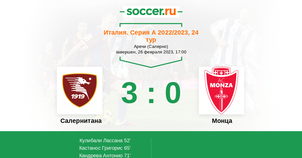 Протокол матча Салернитана против Монца