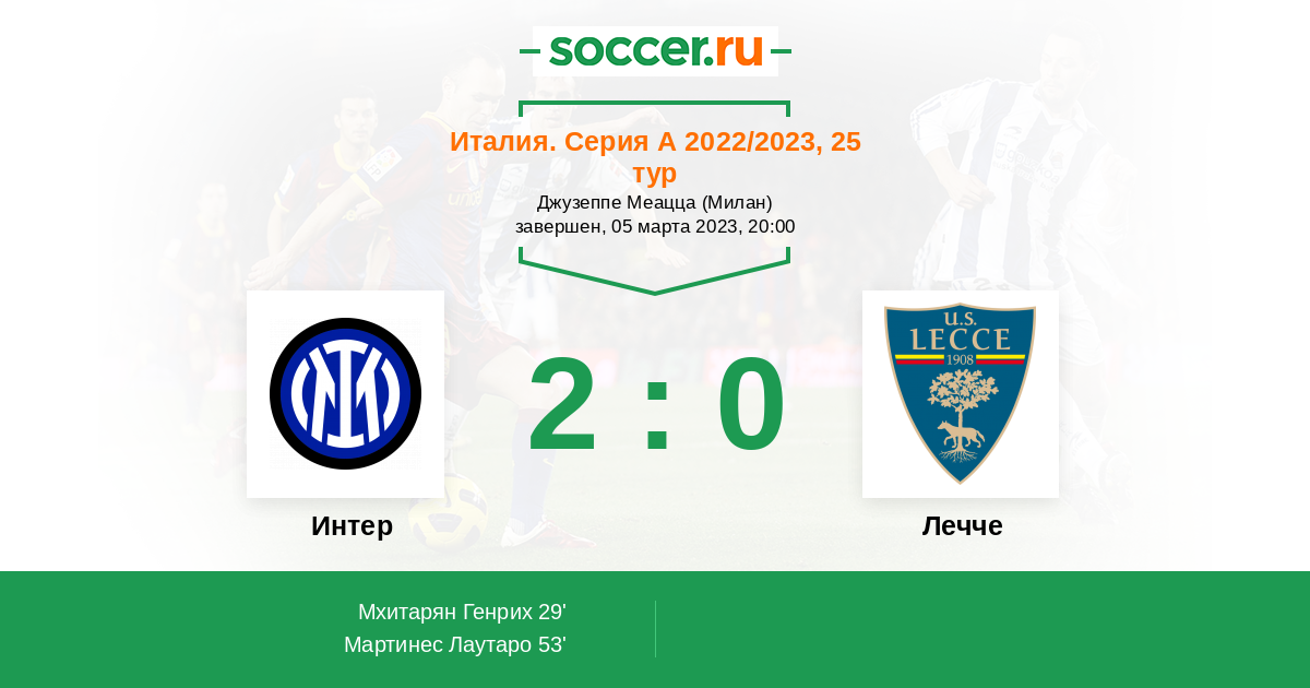 Протокол матча Интер против Лечче
