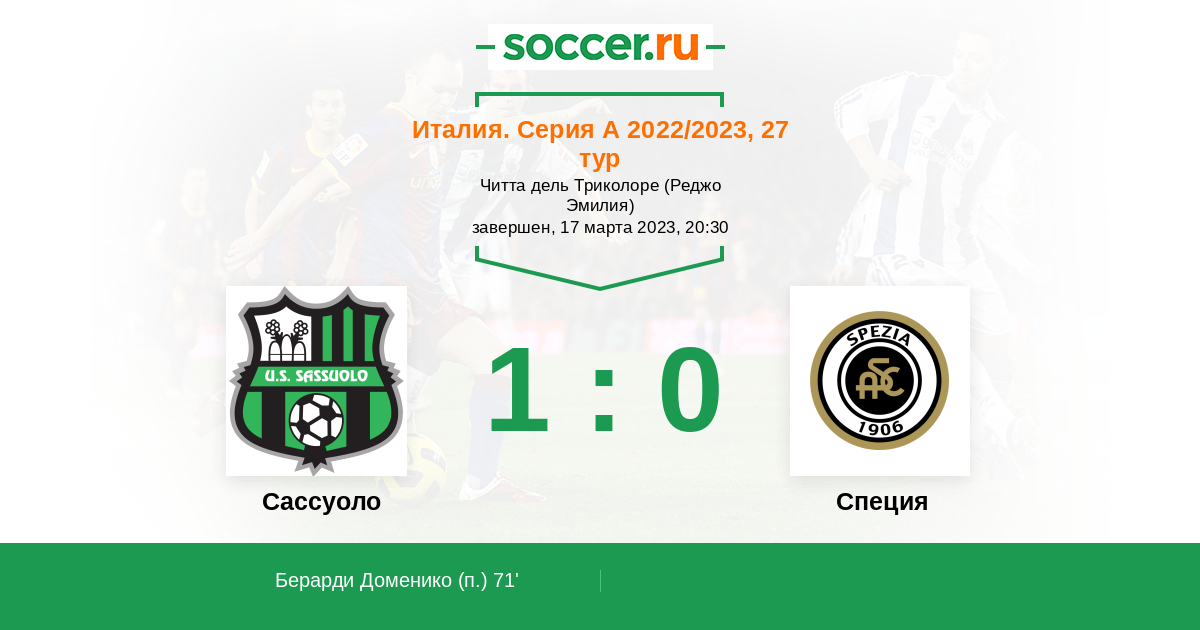 Протокол матча Сассуоло против Специя