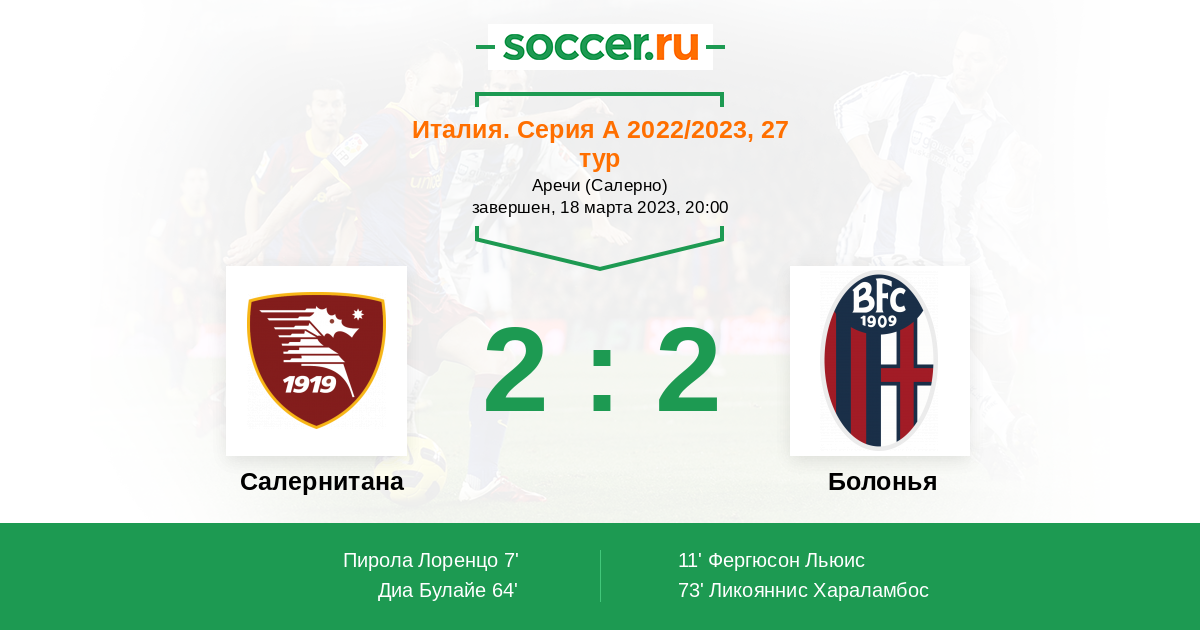 Протокол матча Салернитана против Болонья