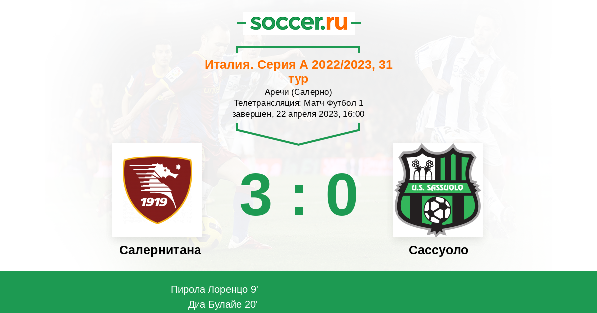 Протокол матча Салернитана против Сассуоло