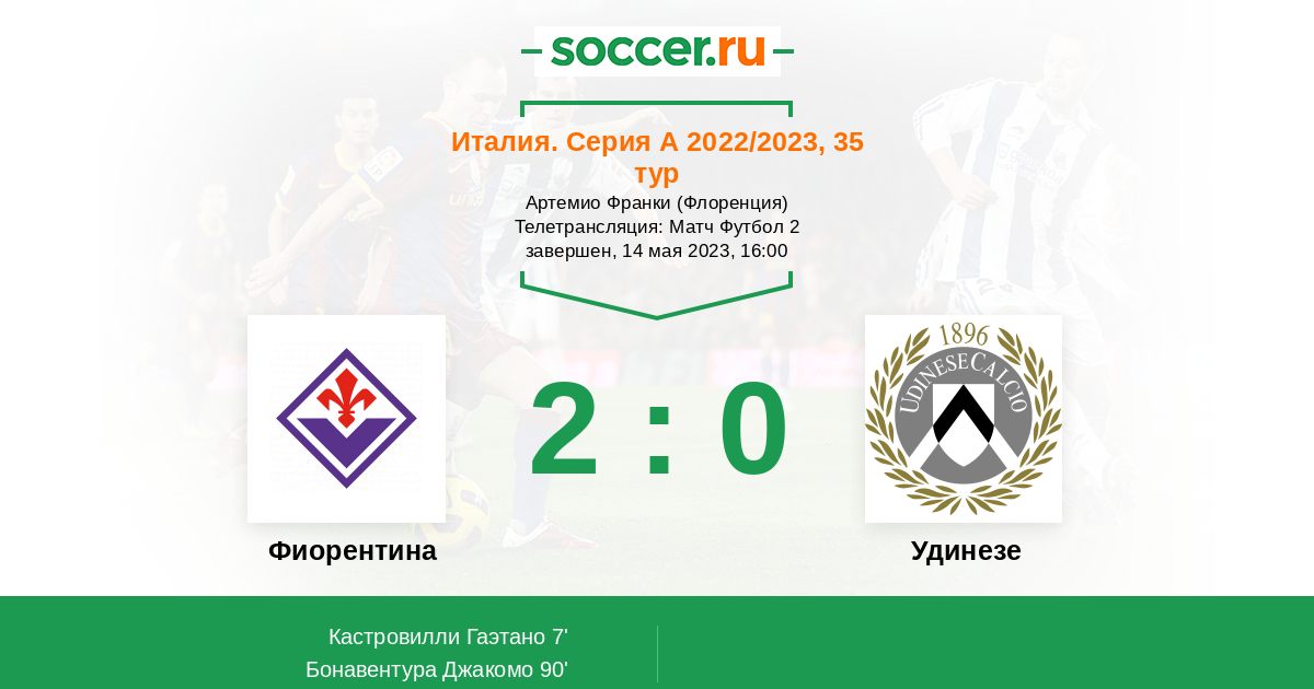 Протокол матча Фиорентина против Удинезе