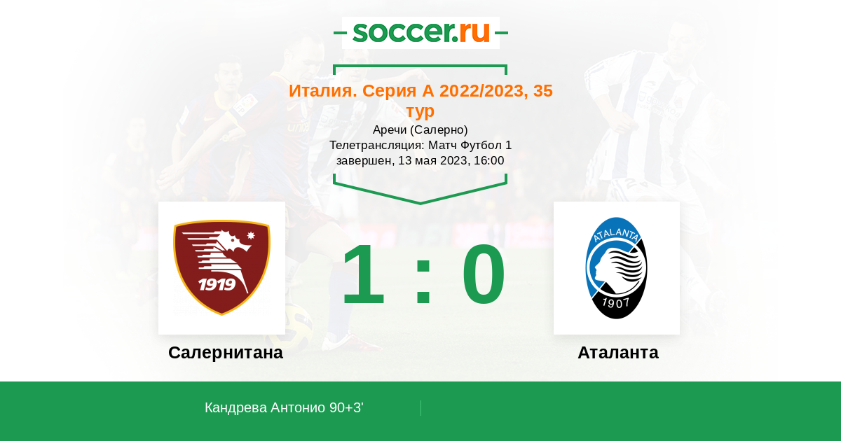 Протокол матча Салернитана против Аталанта