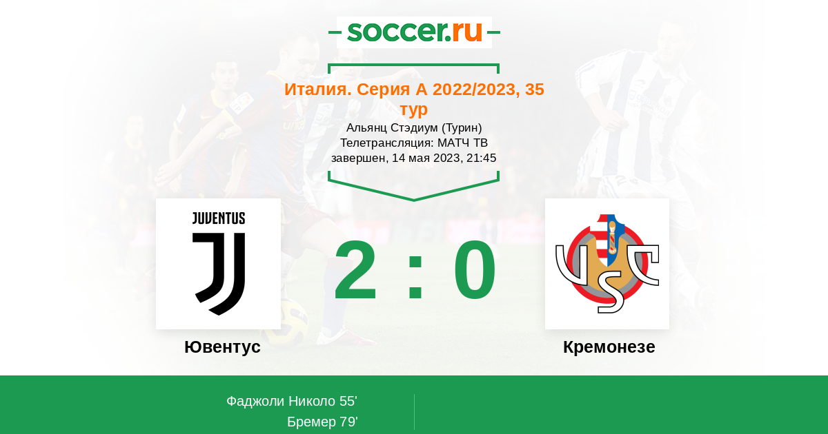 Протокол матча Ювентус против Кремонезе
