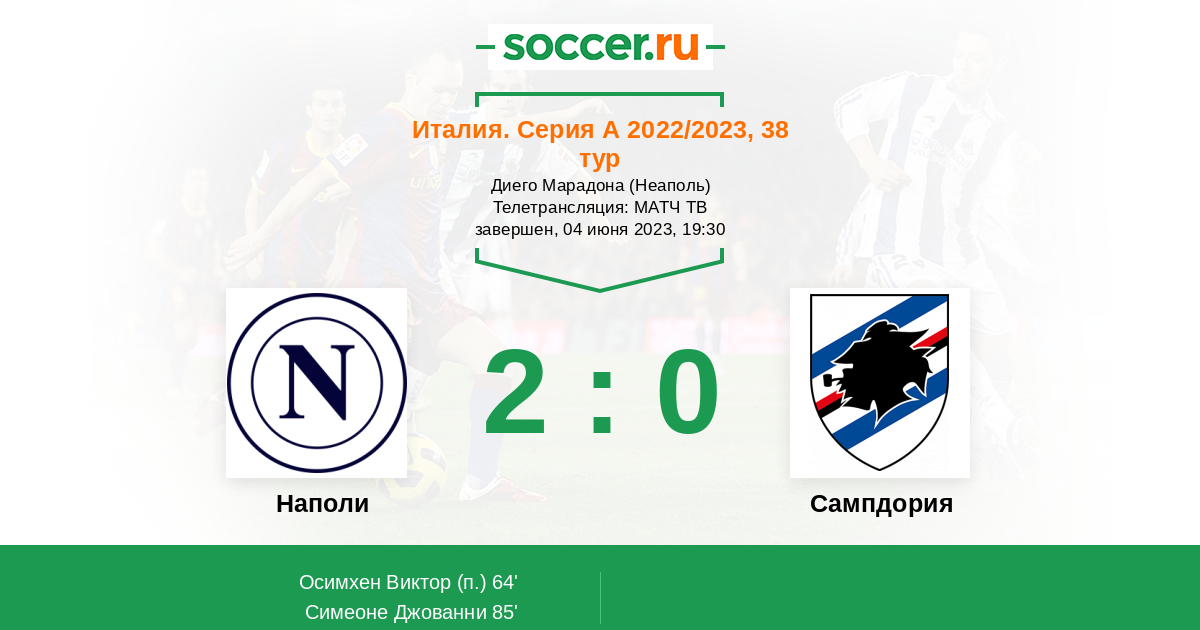 Протокол матча Наполи против Сампдория