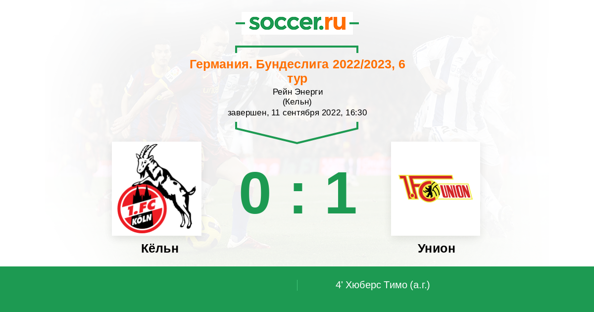Протокол матча Кёльн против Унион