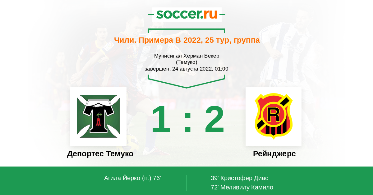 Протокол матча Депортес Темуко против Рейнджерс