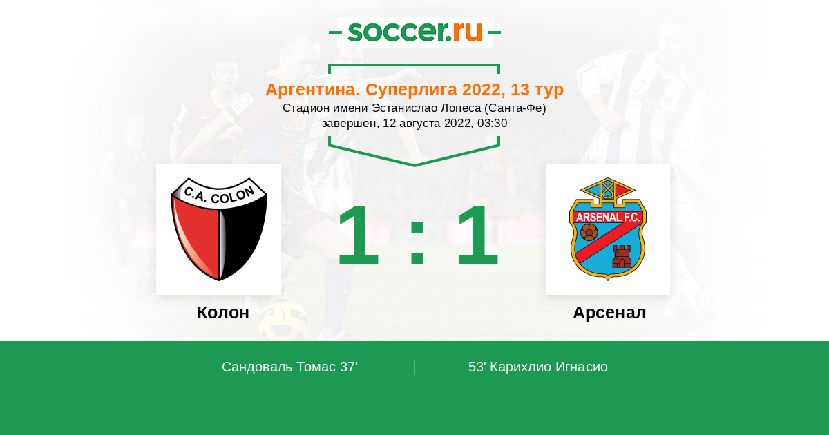 Протокол матча Колон против Арсенал