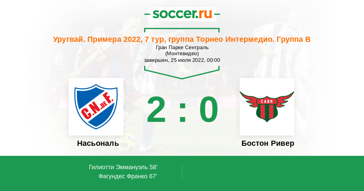 Протокол матча Насьональ против Бостон Ривер
