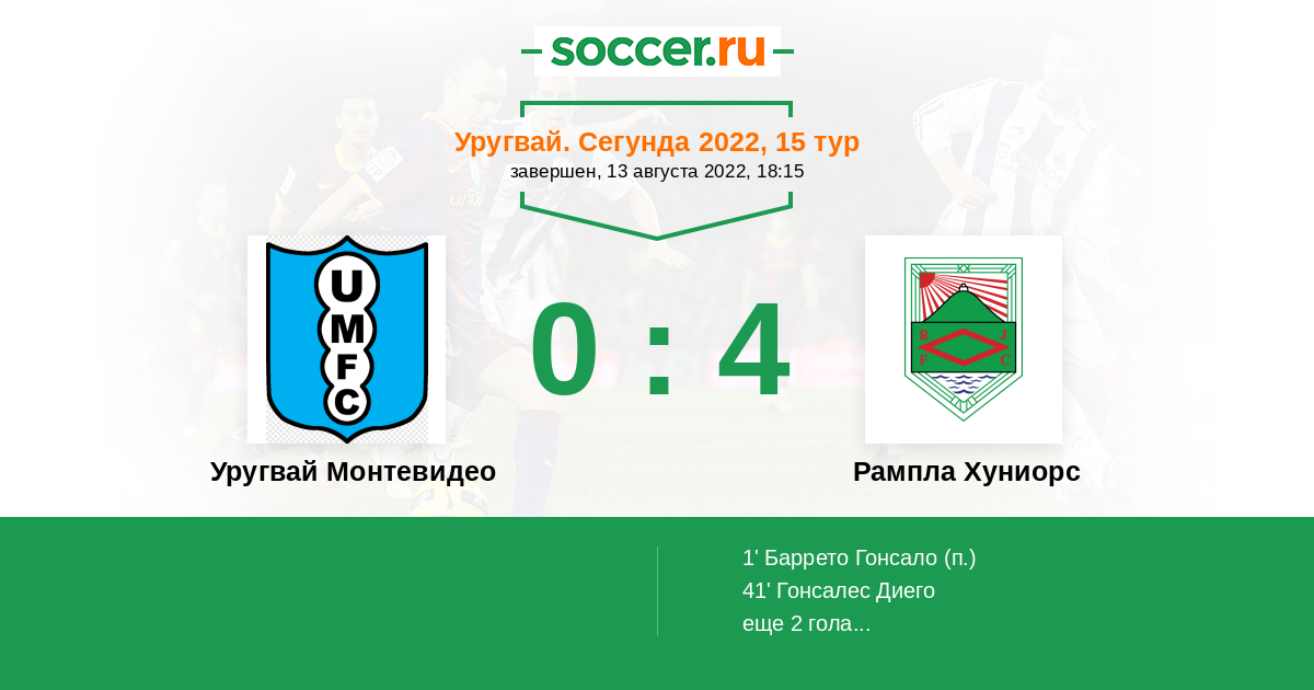 Протокол матча Уругвай Монтевидео против Рампла Хуниорс