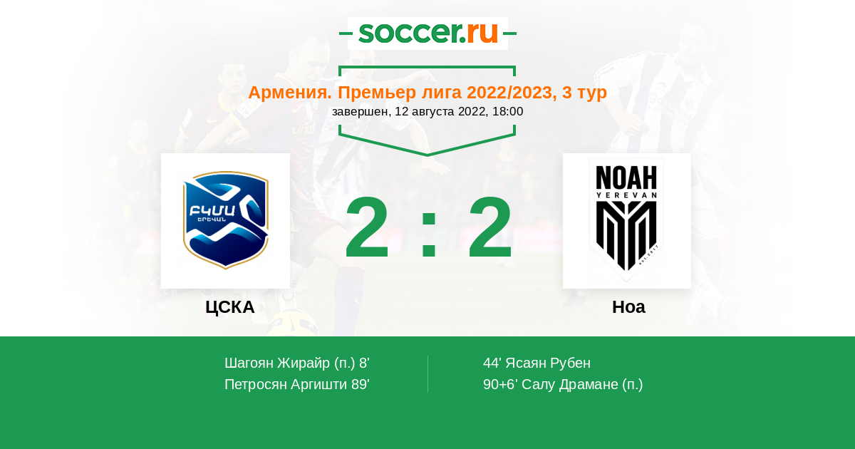 Протокол матча ЦСКА против Ноа