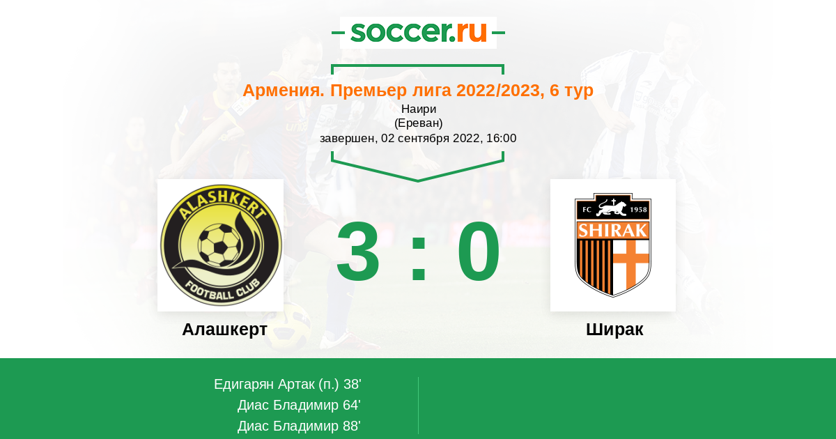 Протокол матча Алашкерт против Ширак