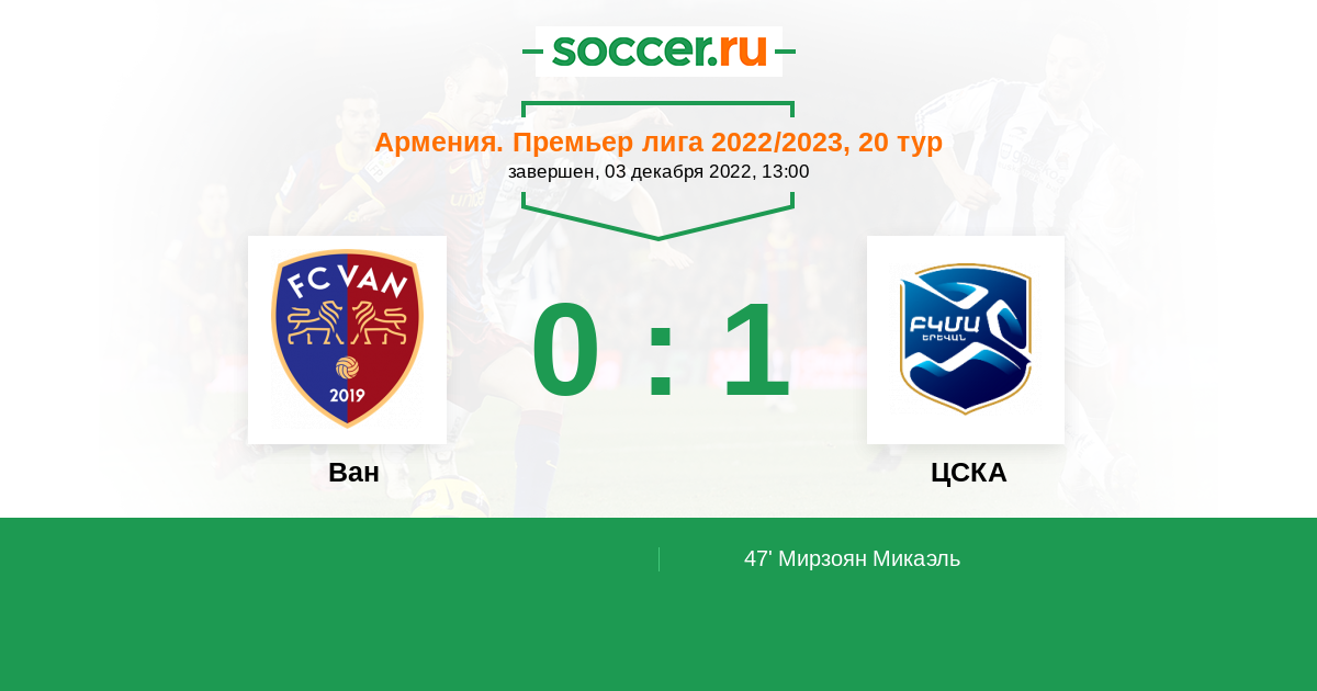 Протокол матча Ван против ЦСКА
