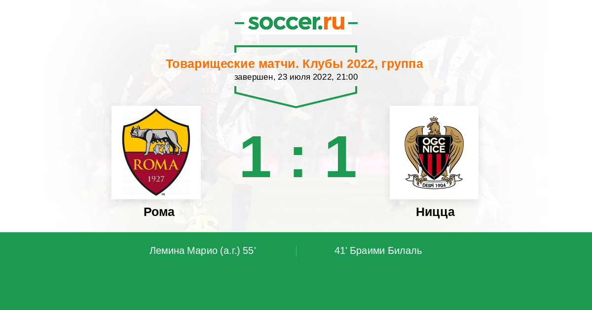 Протокол матча Рома против Ницца