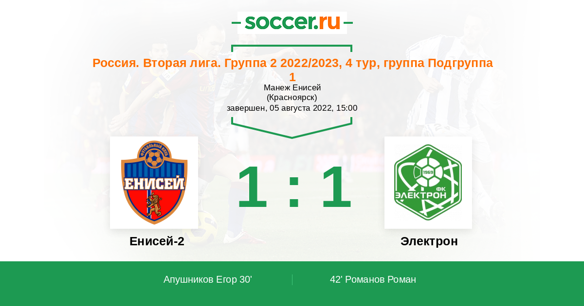 Протокол матча Енисей-2 против Электрон