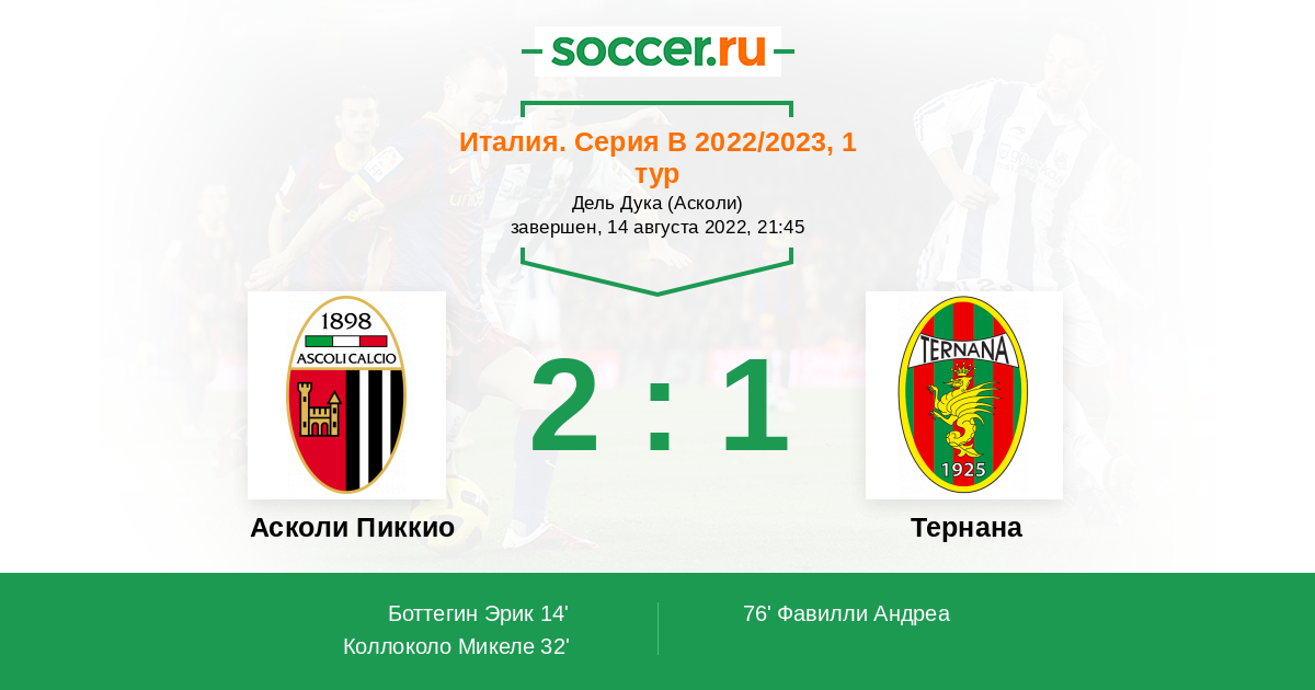 32' (2:0) Коллоколо Микеле (18) (Калигара Фабрицио (8))