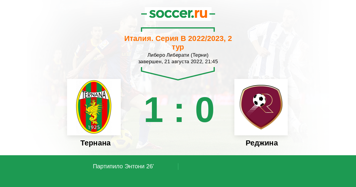 Протокол матча Тернана против Реджина