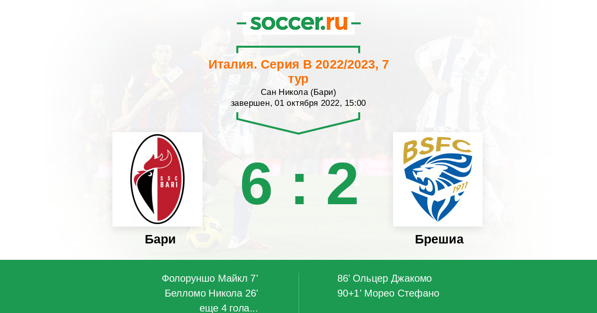 Протокол матча Бари против Брешиа