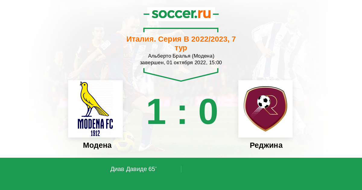Протокол матча Модена против Реджина