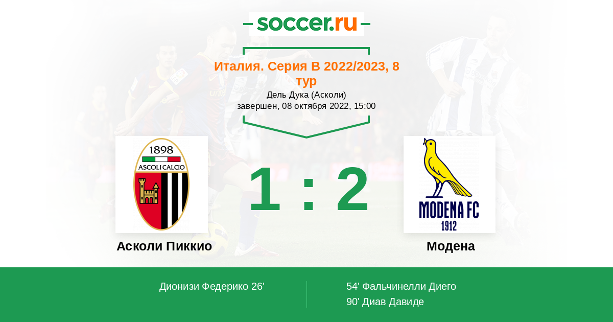 Протокол матча Асколи Пиккио против Модена