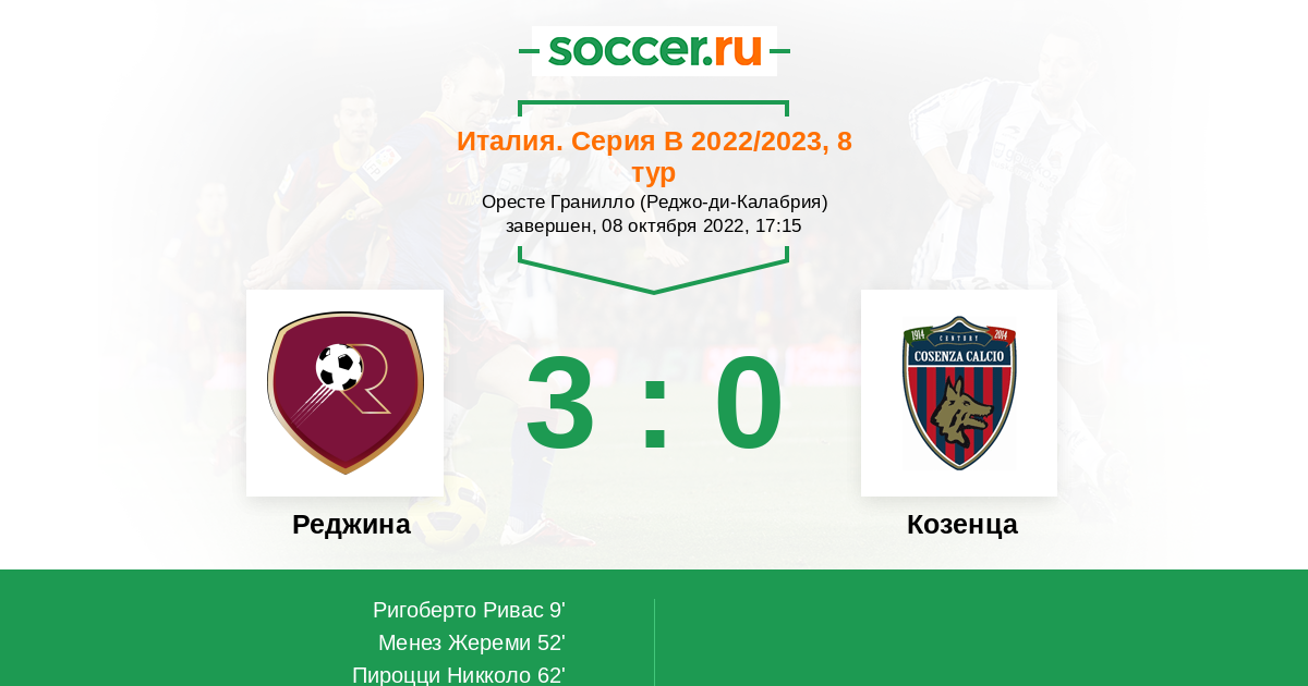 Протокол матча Реджина против Козенца