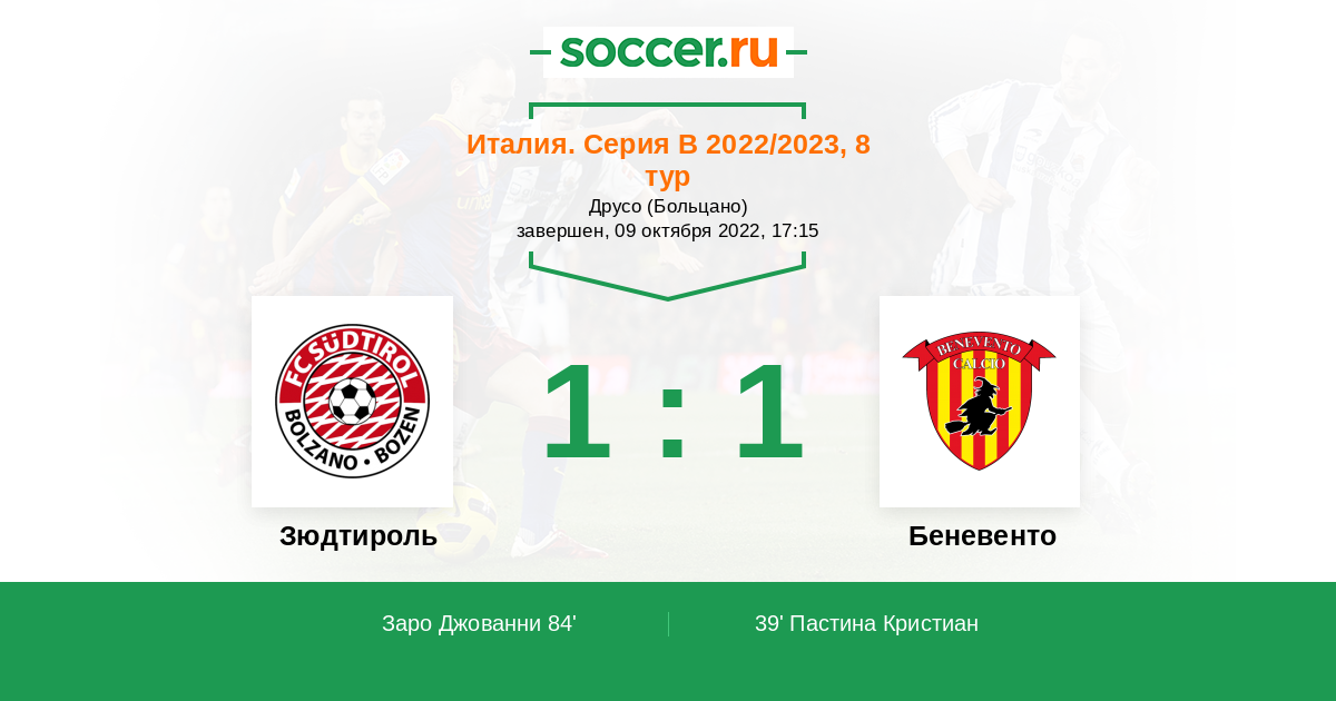 Протокол матча Зюдтироль против Беневенто