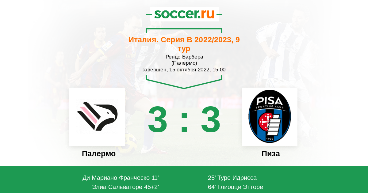 45+2' (2:1) Элиа Сальваторе (77) (Брунори Сандри Маттео (9))