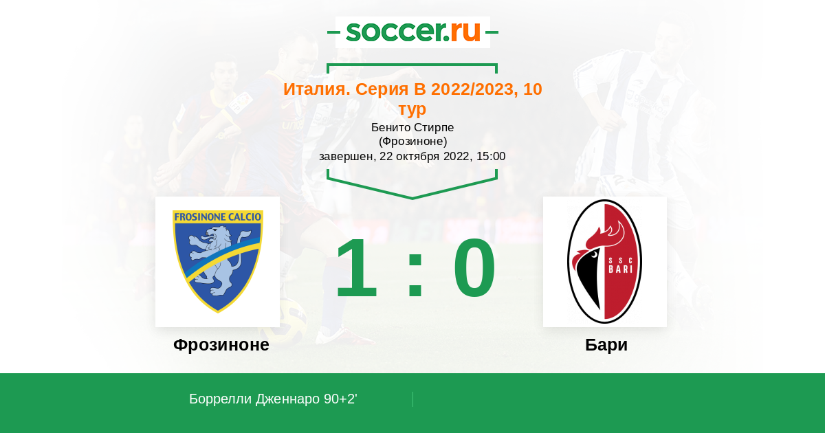 Протокол матча Фрозиноне против Бари
