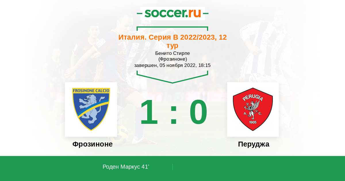 Протокол матча Фрозиноне против Перуджа