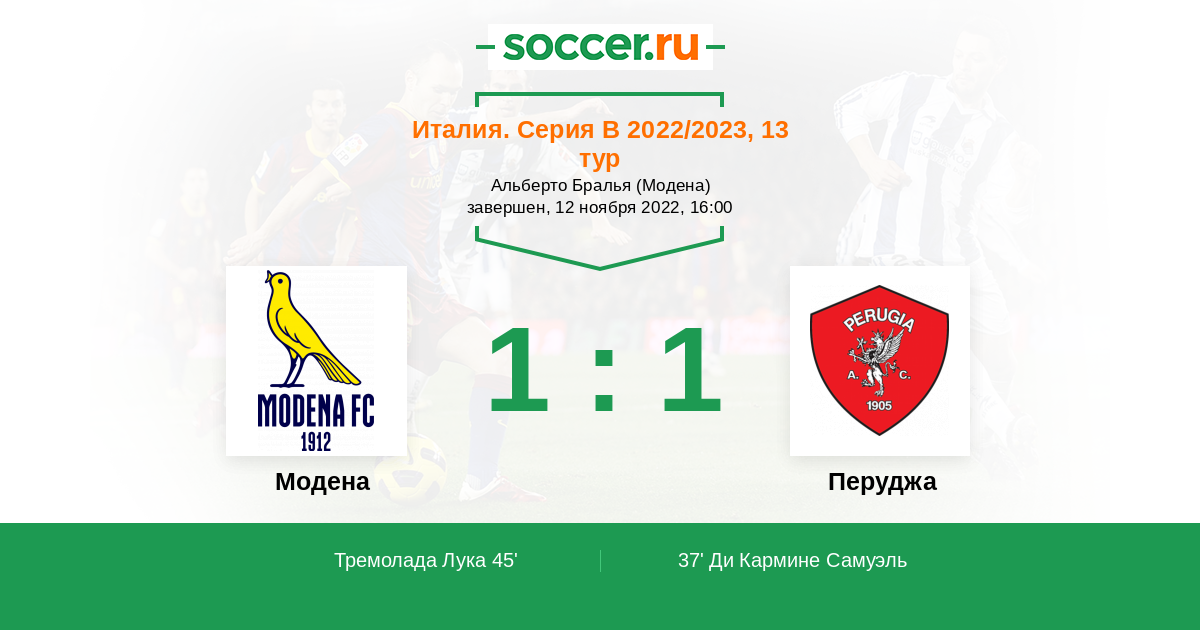 45' (1:1) Тремолада Лука (10) (Диав Давиде (99))