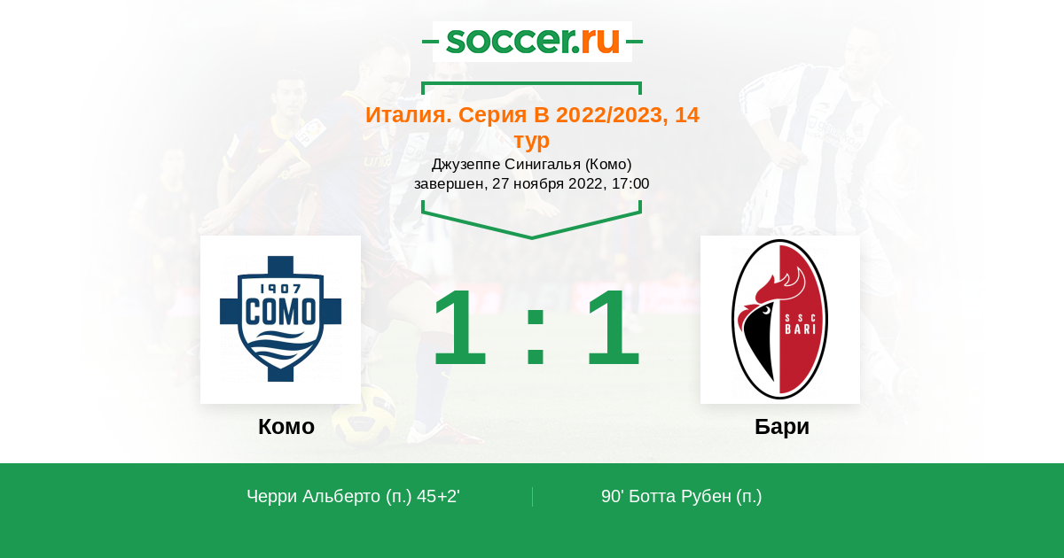 Протокол матча Комо против Бари
