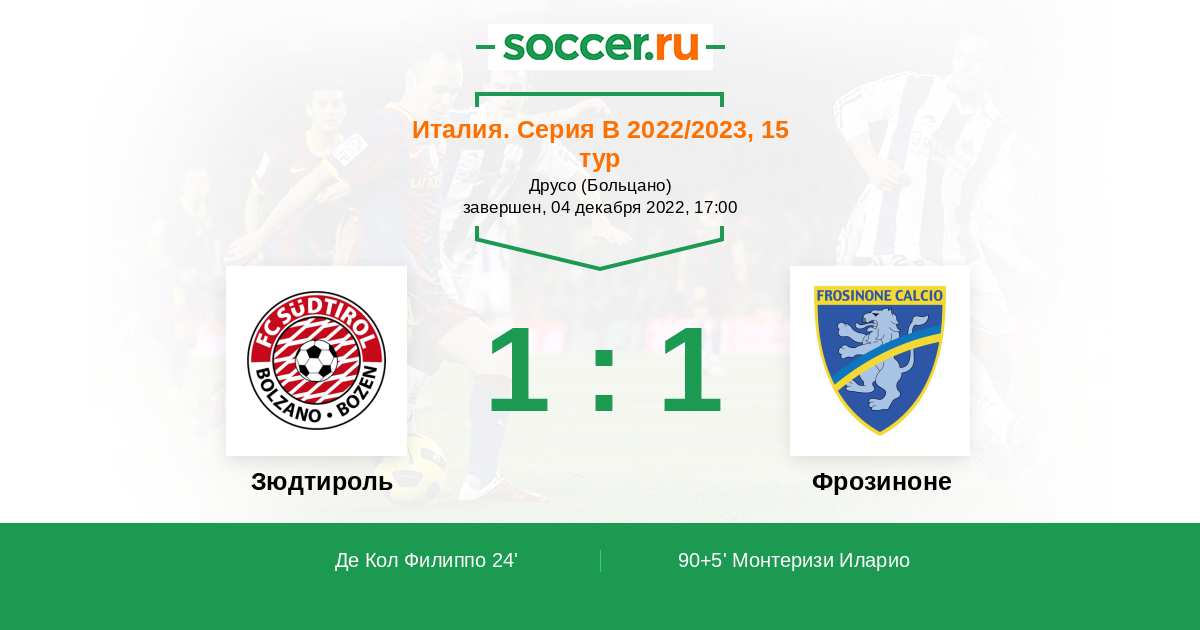 Я думаю что в этом противостоянии более чем явным фаворитом на победу выглядит команда гостей Фрозиноне . Но и команда хозяев поля Зюдтироль не уйдёт с поля без забитого мяча . Победа гостей или ничья .