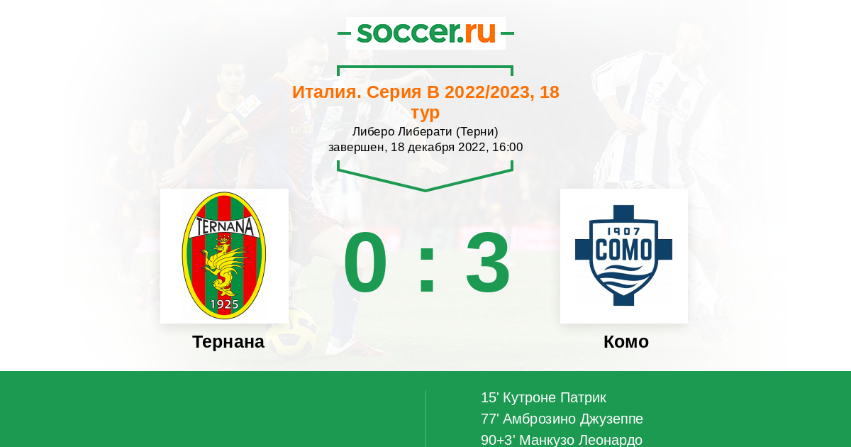 Протокол матча Тернана против Комо