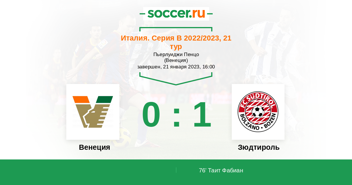76' (0:1) Таит Фабиан (21) (Маркони Микеле (31))