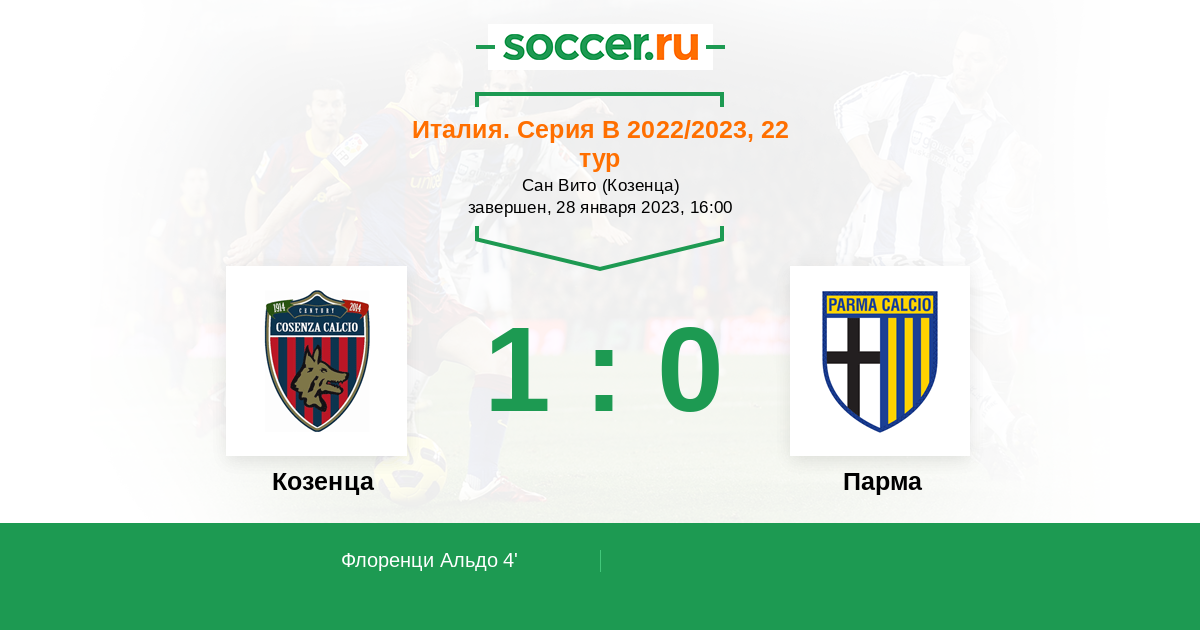 Протокол матча Козенца против Парма