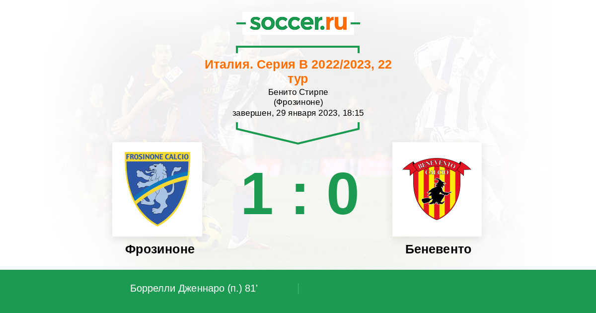 Протокол матча Фрозиноне против Беневенто