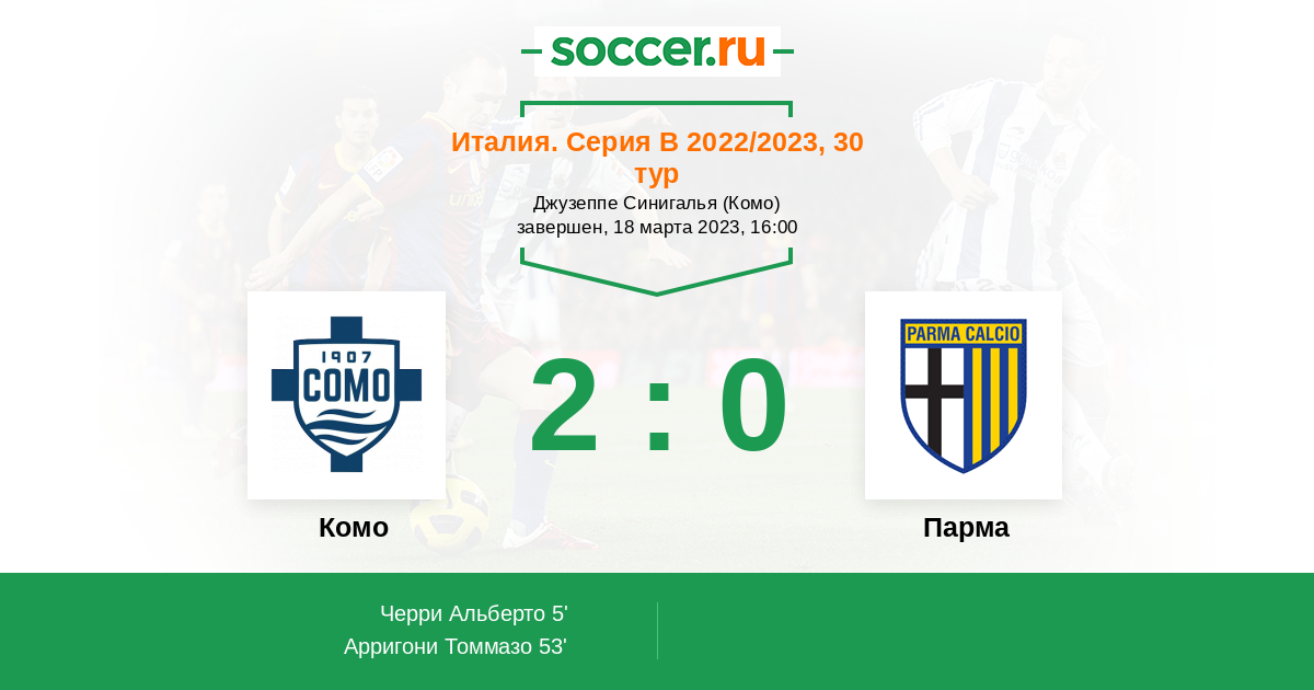 Протокол матча Комо против Парма
