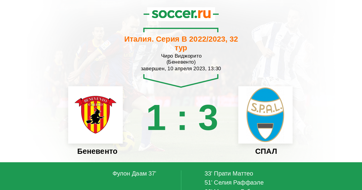 В этом противостоянии встречаются две команды соседи, из подвала турнирной таблицы и сражаются за выживание . Небольшое преимущество отдам команде хозяев поля Беневенто ввиду того что команда играет на своём родном стадионе . Минимальная победа хозяев поля или ничья .