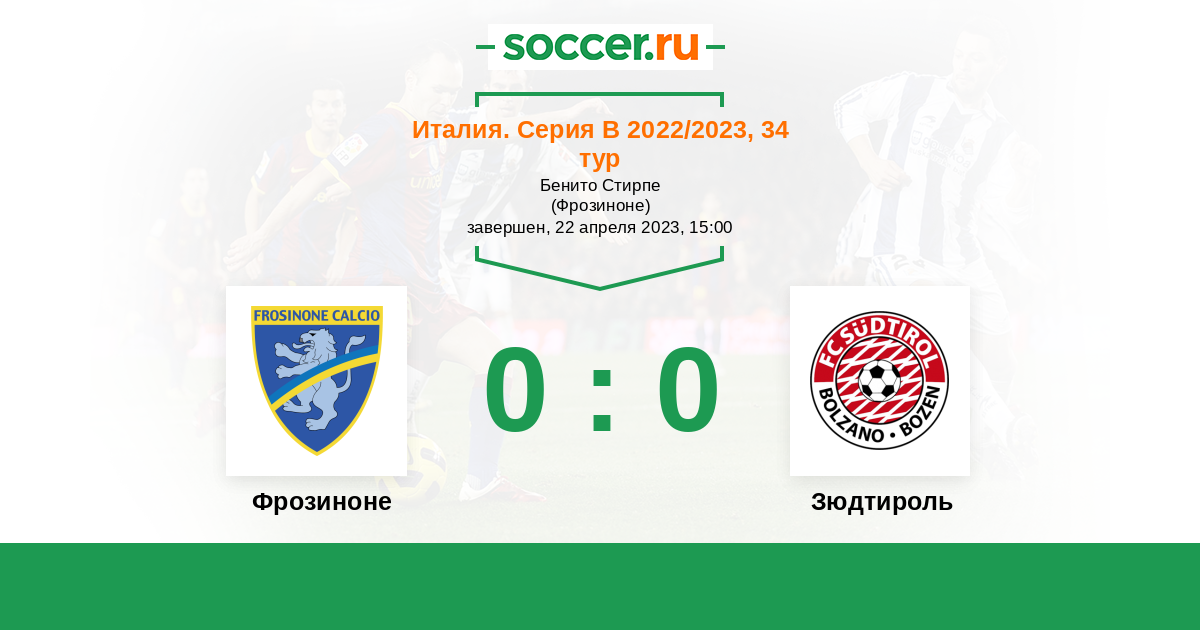 Протокол матча Фрозиноне против Зюдтироль