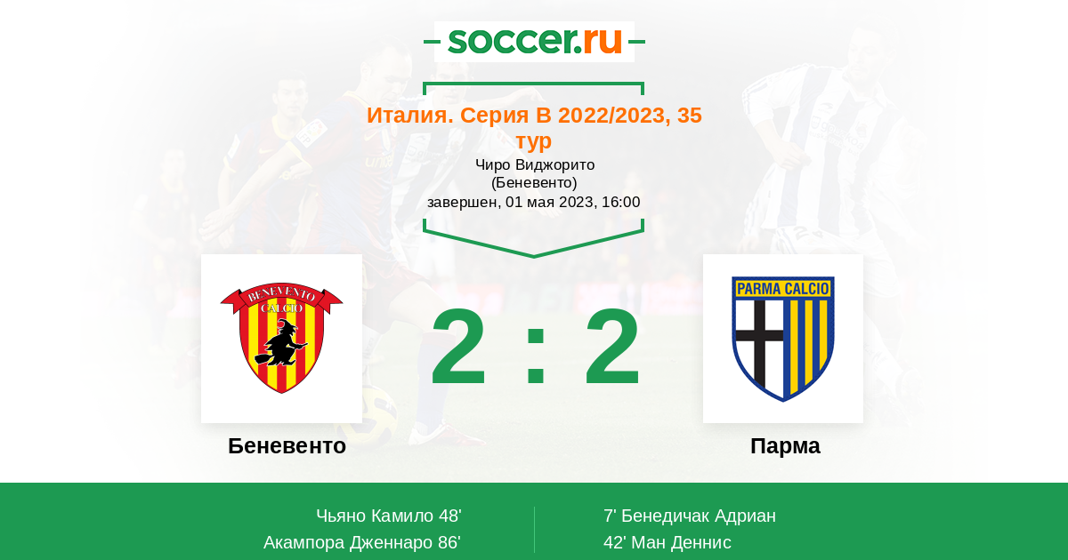Протокол матча Беневенто против Парма